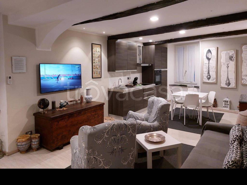 Appartamento ristrutturato a nuovo nel 2014 al 1 piano di edificio di interesse storico in pieno centro storico medioevale a 50 metri dal ... cottura , camera , bagno con doccia finestrato e ripostiglio. Travi a vista controsoffittato con corpi illuminanti ad incasso ...