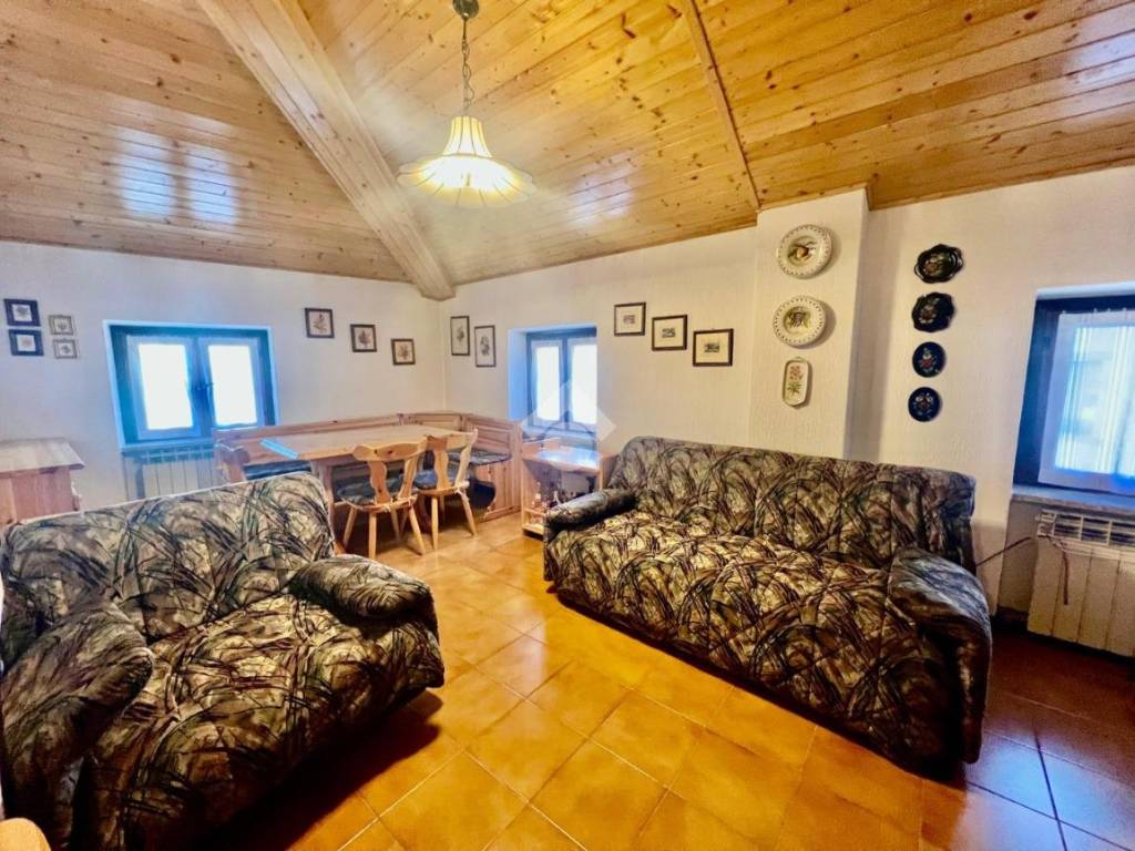 Trilocale completamente arredato, soggiorno con camino, angolo cottura, disimpegno, 1 letto matrimoniale, 1 letto a castello, bagno, balcone, box privato, tetto nuovo. Termoautonomo con comandi da remoto, wifi.