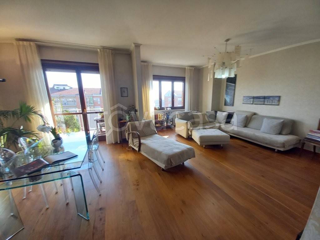 In stabile signorile dotato di portineria proponiamo, al 10° ed ultimo piano con favolosa vista sulle Alpi e sulla collina, questo ... raggiungibile con ascensore, sono presenti una cantina ed un box auto singolo.