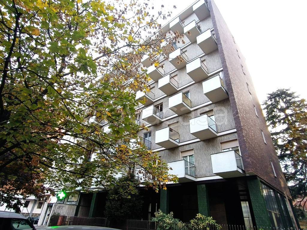 In stabile signorile dotato di portineria proponiamo, al 10° ed ultimo piano con favolosa vista sulle Alpi e sulla collina, questo appartamento composto di ingresso, salone doppio, cucina abitabile, due camere da letto, doppi servizi e ...