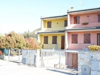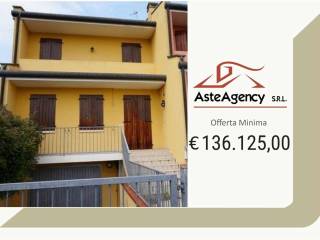 In asta porzione terra/cielo di abitazione a schiera (di circa mq. 120,25 calpestabili, ai piani rialzato e primo), ripostiglio e garage (di circa mq 58,80 calpestabili) al piano seminterrato, corte esclusiva. Classe energetica d. E' cosi composto...