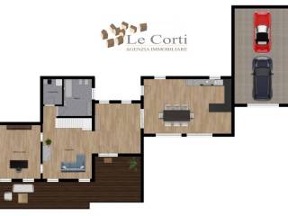 All'esterno annesso ricovero attrezzi, garage ed ampio terreno esclusivo di proprietà.