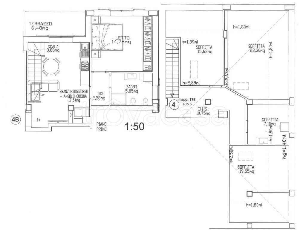 L'appartamento, disposto su due livelli, è post al 2° e 3° ed ultimo piano servito da ascensore.