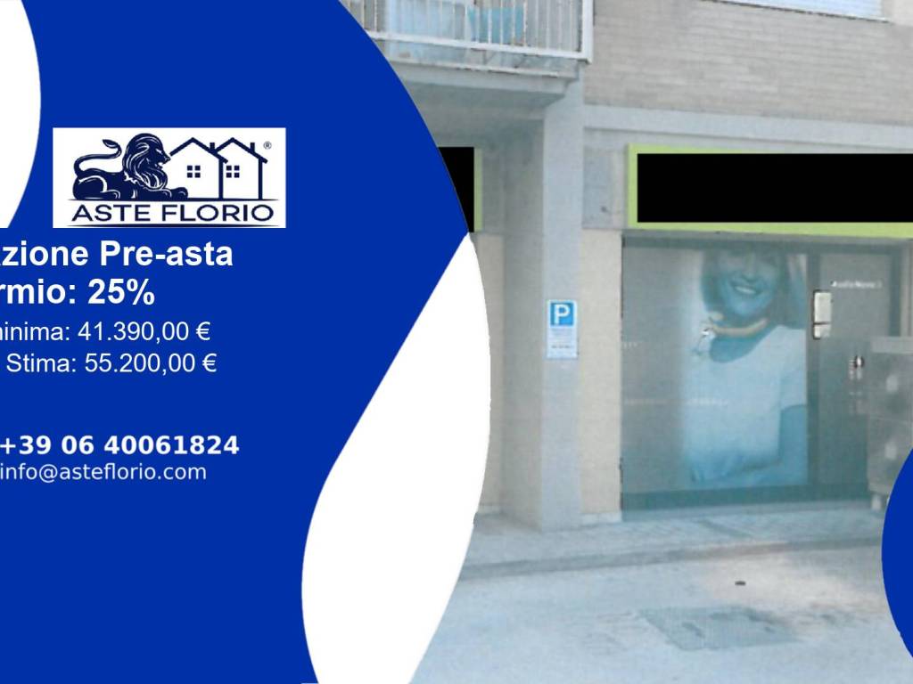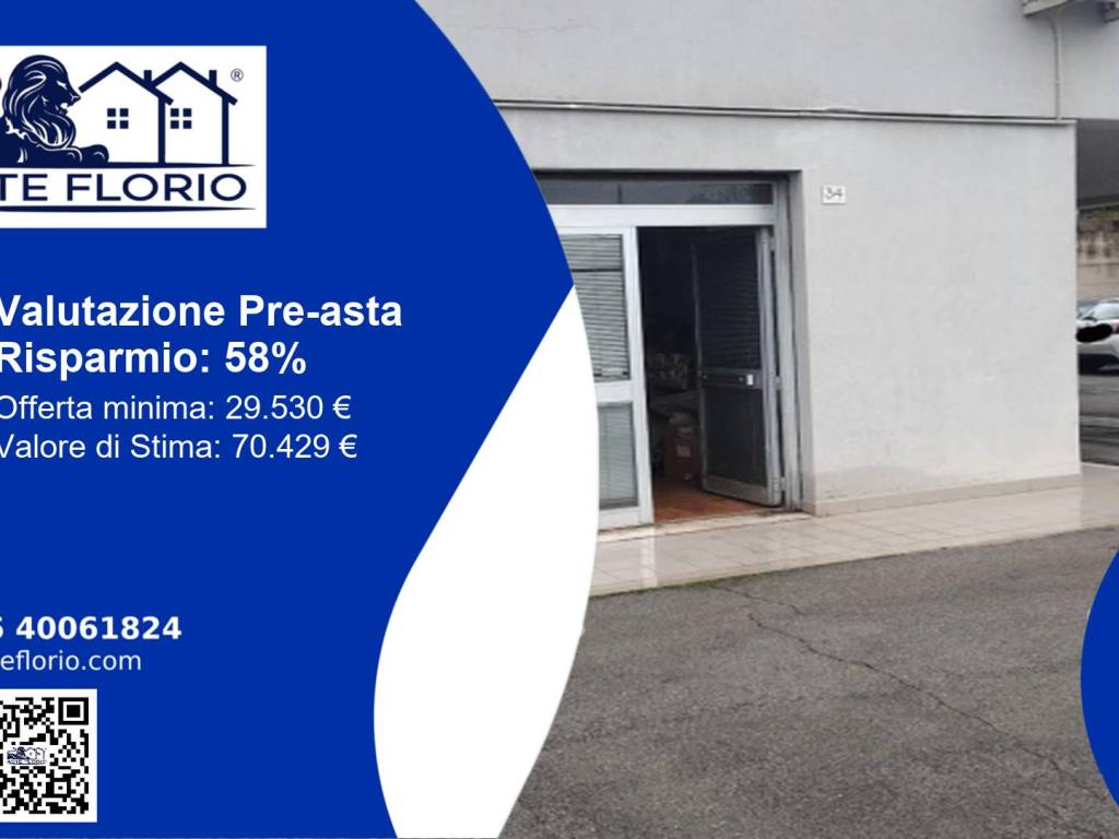 Negozio posto al piano terra di edificio condominiale, con accesso diretto dalla pubblica via, composto da un locale principale ed uno adibito a magazzino, bagno con antibagno, di superficie calpestabile pari a circa 40.00 mq.