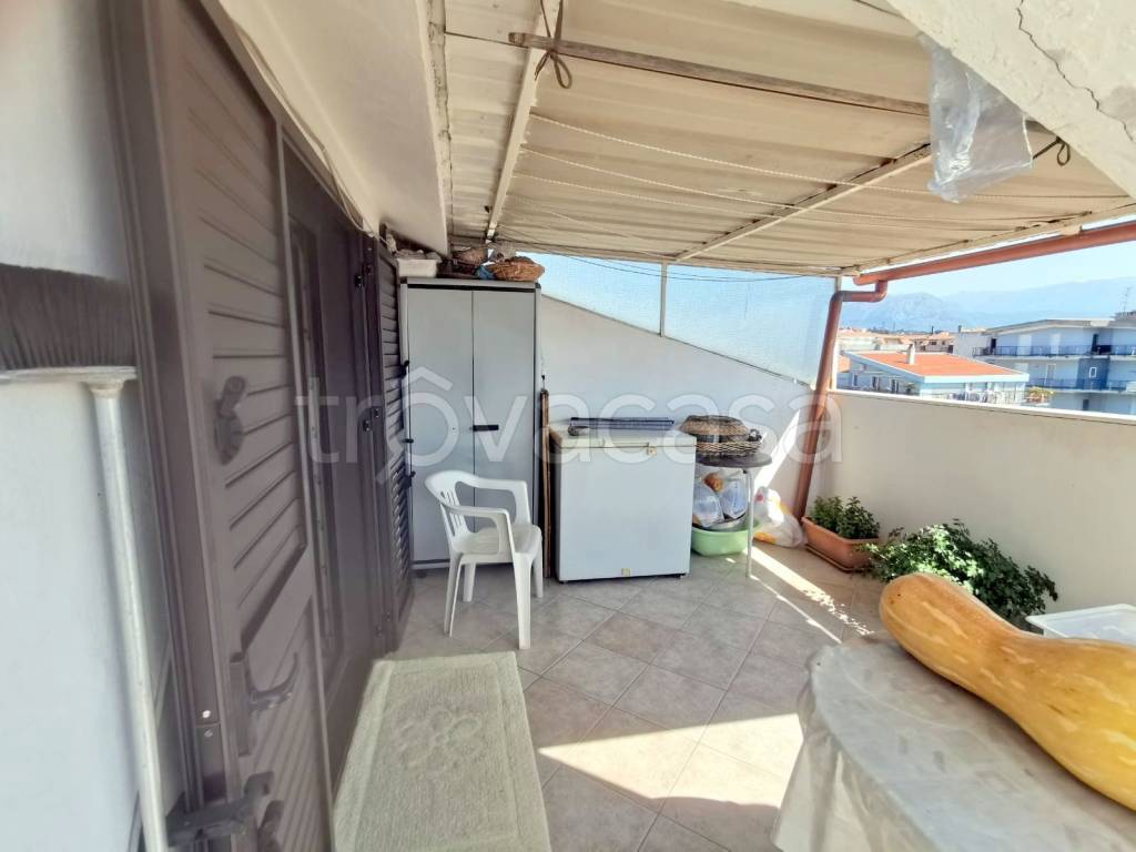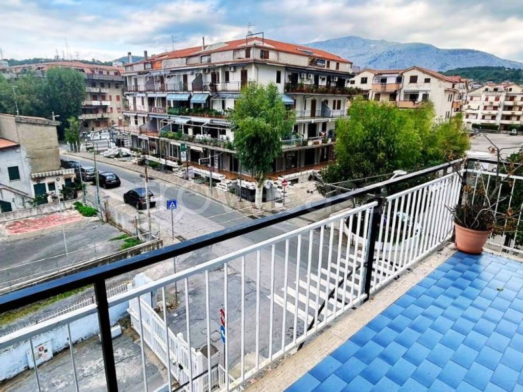 Scalea in Via Modigliani, zona tranquilla e riservata, proponiamo in vendita appartamento al primo piano composto da: cucina, salone, due camere da letto, bagno, ripostiglio, bagno, balcone di 6 mq con vista mare, terrazzo di 15 mq con vi...