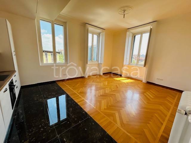 In prestigioso stabile signorile con portineria attiva tutto il giorno, dimora real estate propone in locazione un raffinato trilocale al sesto piano con ascensore, caratterizzato da ambienti luminosi, spazi generosi e una splendida vista aperta s...