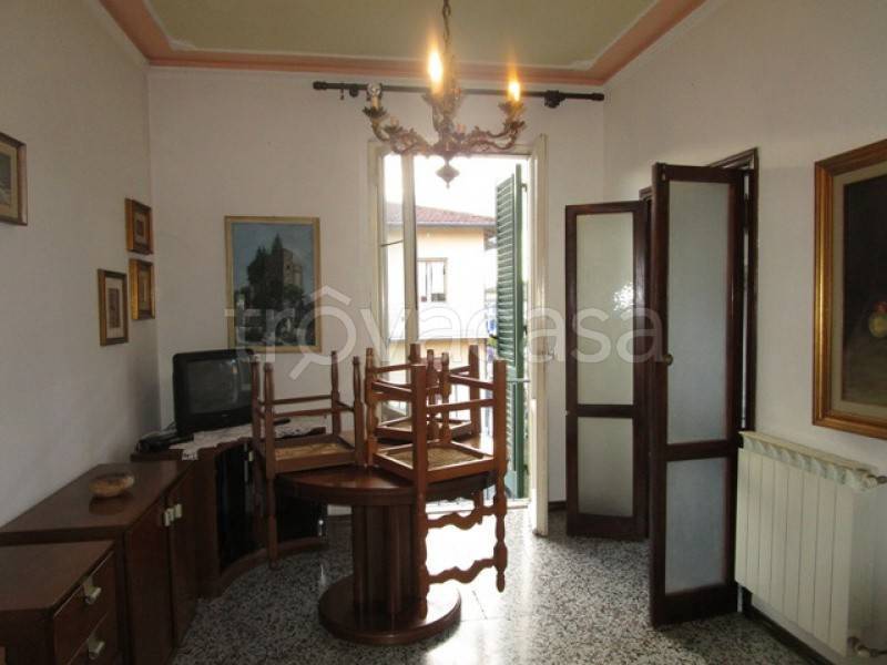 Appartamento al piano primo, ristrutturato, composto da ampia zona giorno suddivisa da soggiorno/pranzo e cucinotto, due camere, disimpegno, ripostiglio, terrazzi e garage. Libero a breve. Giudizio dell'esperto "Buono" Classe energ."G