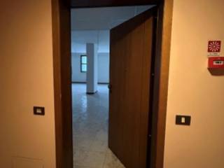 Ufficio posto al primo piano ammezzato, con tre locali separati da fondelli in cartongesso e due bagni, con lavabo e wc, circa 77 mq