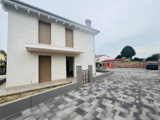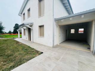 Saletto vendesi bifamiliare al grezzo piano terra i piano primo, composta da: Piano terra ingresso, soggiorno, cucina, bagno, garage e giardino, piano primo tre ampie camere, bagno, terrazzi, molto bella se personalizzata dalle finiture, da vede...