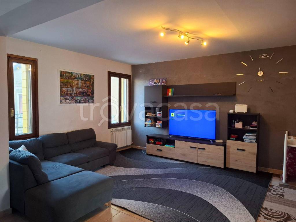 In posizione centrale del paese, comoda a tutti i servizi e ad una decina di minuti dal centro di Adria, proponiamo in vendita questa abitazione accostata da un lato, disposta su due livelli e ristrutturata recentemente. L'immobile dispone di scop...
